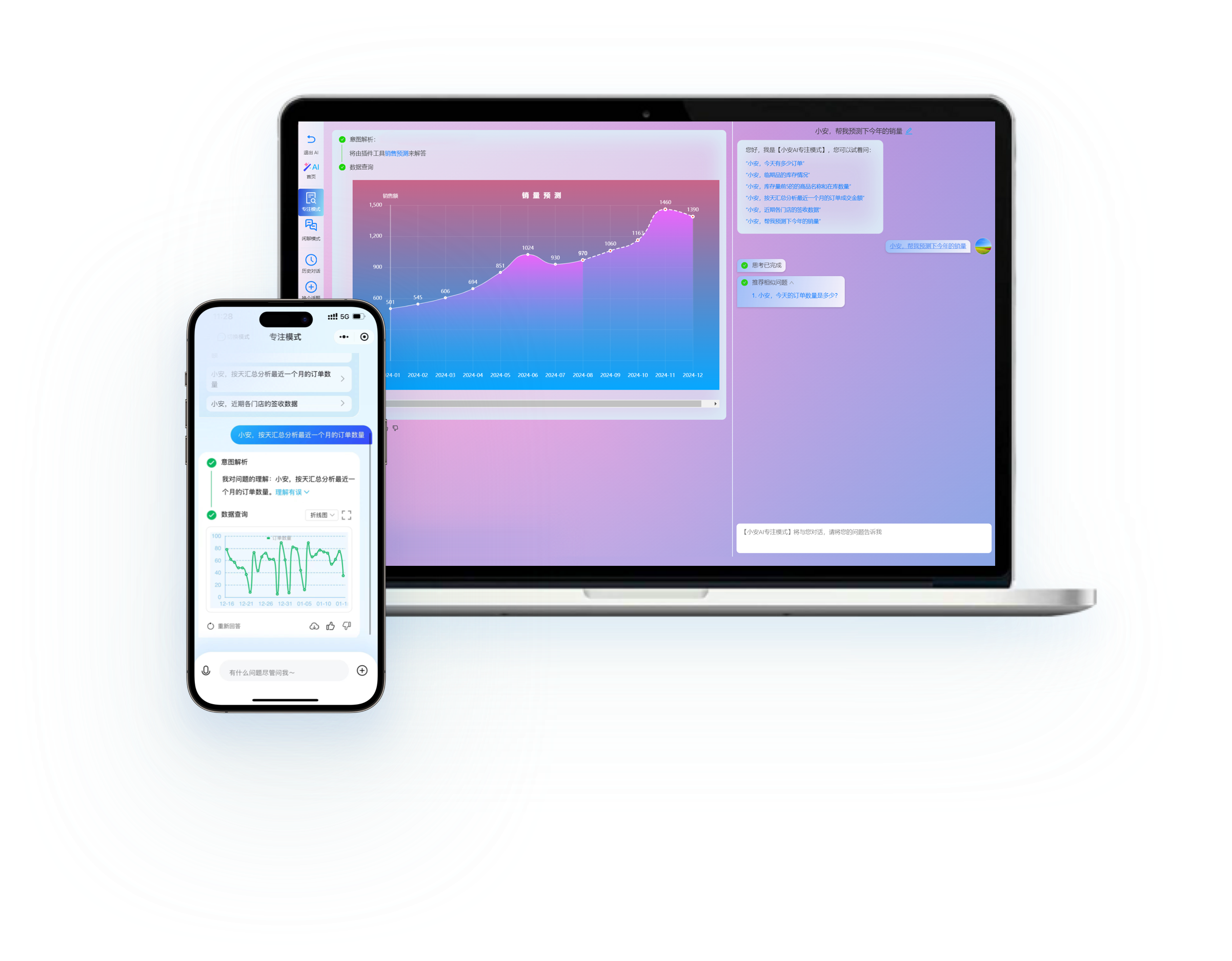 小安AI仅凭一句指令即可迅速构建数据图表,灵活易用,可以大幅提升用户数据分析效率