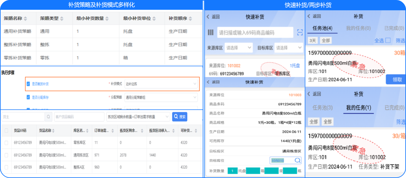 涵盖闲时补货与紧急补货, 精准匹配不同运营场景。